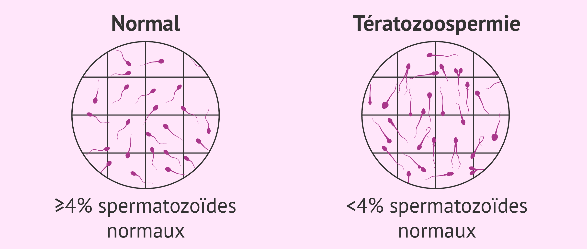 La tératozoospemie ou tératospermie peut se produire lorsque 97 % ou plus des spermatozoïdes présentent une anomalie de morphologie.