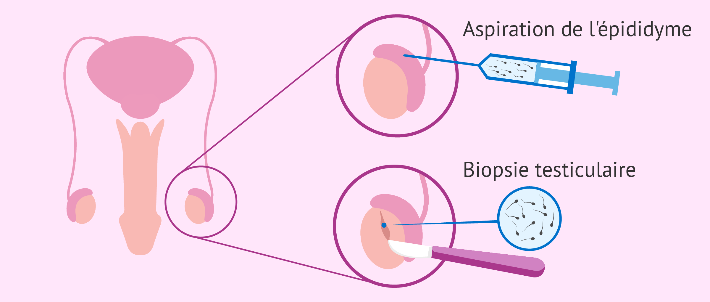 De plus, en cas d'absence totale de spermatozoïdes dans l'éjaculat, ceux-ci doivent être obtenus par une aspiration de l'épididyme ou une biopsie testiculaire. Par exemple, dans les cas d'azoospermie due à une obstruction des canaux séminaux ou chez les hommes ayant subi une vasectomie.