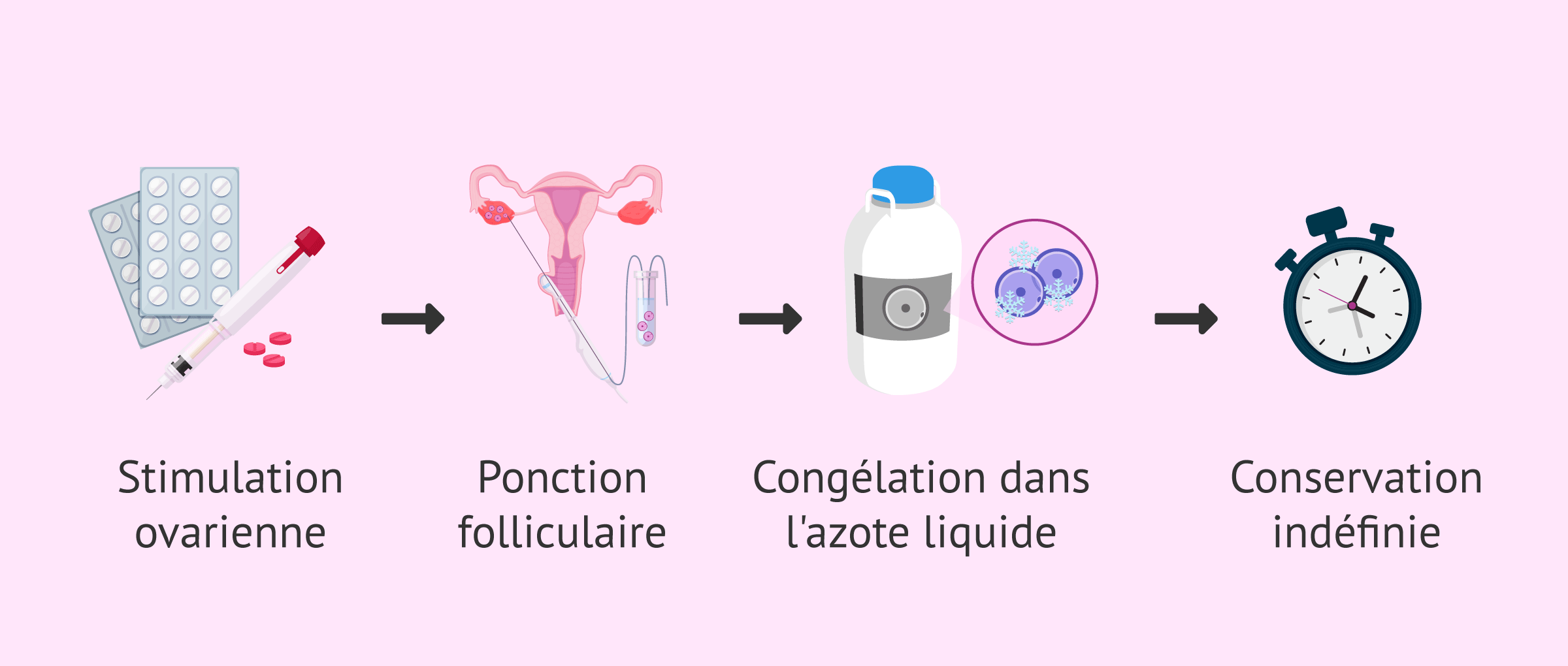 Lorsqu'une femme décide de préserver sa fertilité, il sera nécessaire d'administrer certains médicaments qui permettent à la stimulation ovarienne de produire un grand nombre d'ovules. Une fois la femme stimulée, elle subira une ponction ovarienne pour obtenir les ovules, qui seront stockés dans de l'azote liquide jusqu'au moment où elle souhaitera les utiliser. Ce stockage des œufs n'a pas de durée déterminée, mais ils sont conservés indéfiniment sans altération de leur qualité.