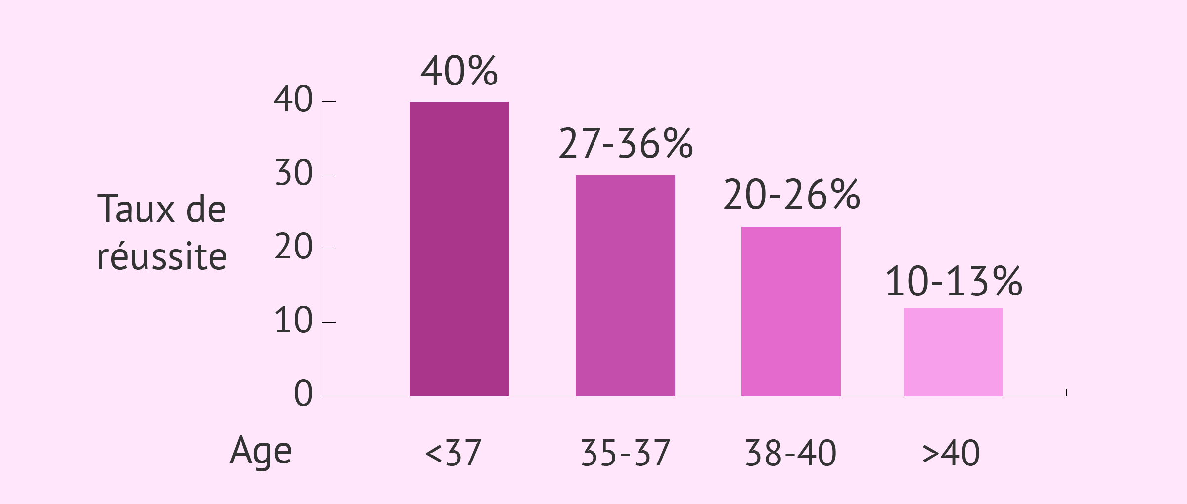 Les chances de réussites sont variables et s'élèvent en moyenne autour de 22% par cycle. Ils varient notamment en fonction de l'âge. La Sécurité Sociale ne prend en charge que les patientes âgées de moins de 43 ans au jour de la ponction folliculaire.