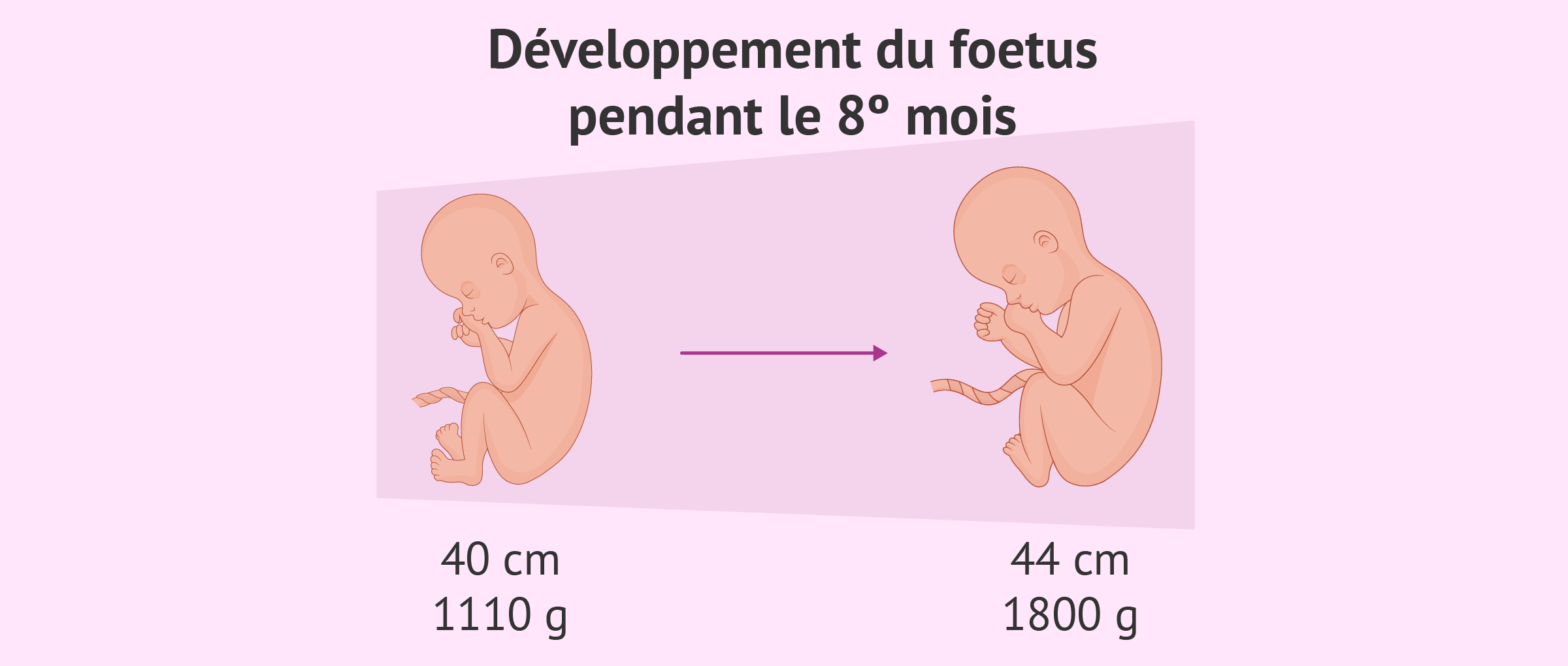 Lors de la semaine 32 de grossesse, le futur bébé a atteint un poids de 1.800g en moyenne. À cette étape, le bébé commence à perfectionner ses sens comme l'odorat puisque les premiers neurones olfactifs commencent à se former.