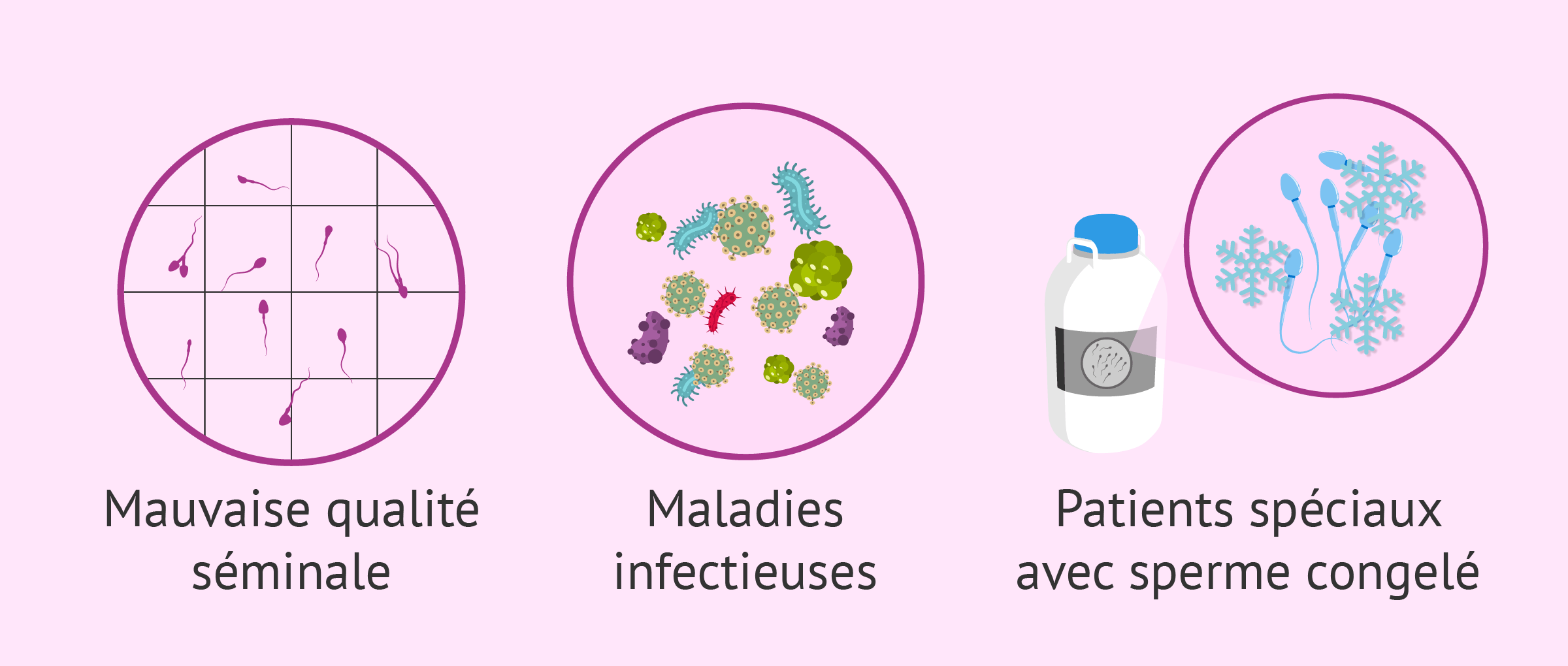 Les échantillons de sperme avec présence d'une infection comme le VIH ou l'hépatite ont besoin d'être traités avec beaucoup de précautions pour en éliminer la charge virale. Après cela, l'ICSI est la technique la plus efficace pour féconder les ovocytes.
