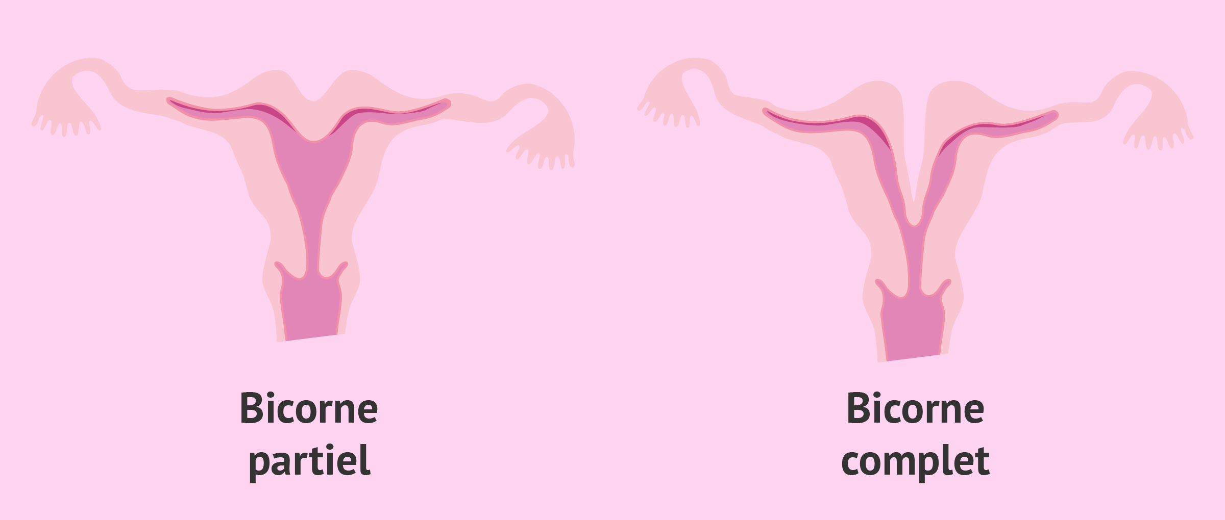 L'utérus bicorne est une malformation utérine congénitale due à une fusion incomplète des canaux de Müller pendant le développement embryonnaire. En conséquence, une fente apparaît dans la partie supérieure de la cavité utérine qui la divise en deux.