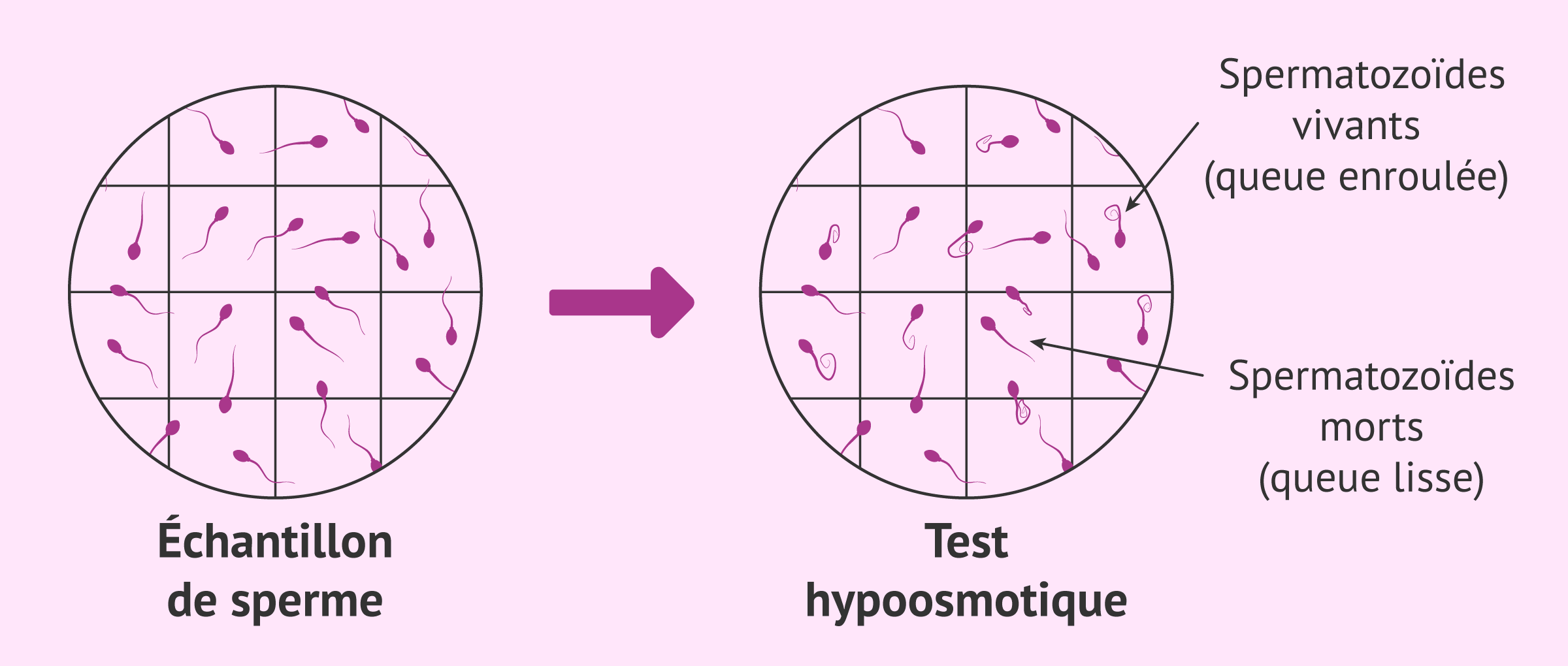 A vitalidade dos espermatozóides é analisada por meio de um teste hipoosmótico para diferenciar a percentagem de espermatozóides vivos e mortos. Espermatozóides vivos são aqueles que têm uma membrana intacta e são, portanto, capazes de absorver água e inchar as suas caudas num ambiente hipoosmótico.