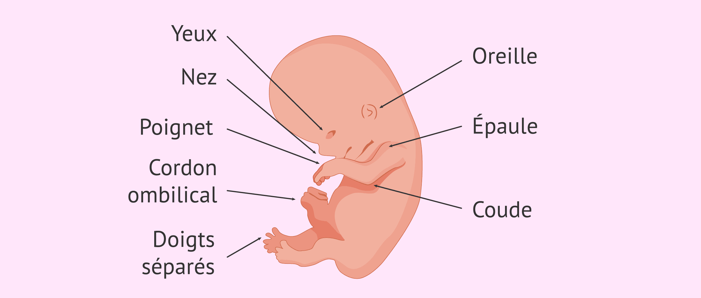 L'un des traits les plus marquants à 9 semaines de gestation est que l'embryon commence à définir ses doigts, qui se séparent les uns des autres pour former la petite main du bébé. La même chose se produit avec les jambes et les pieds.