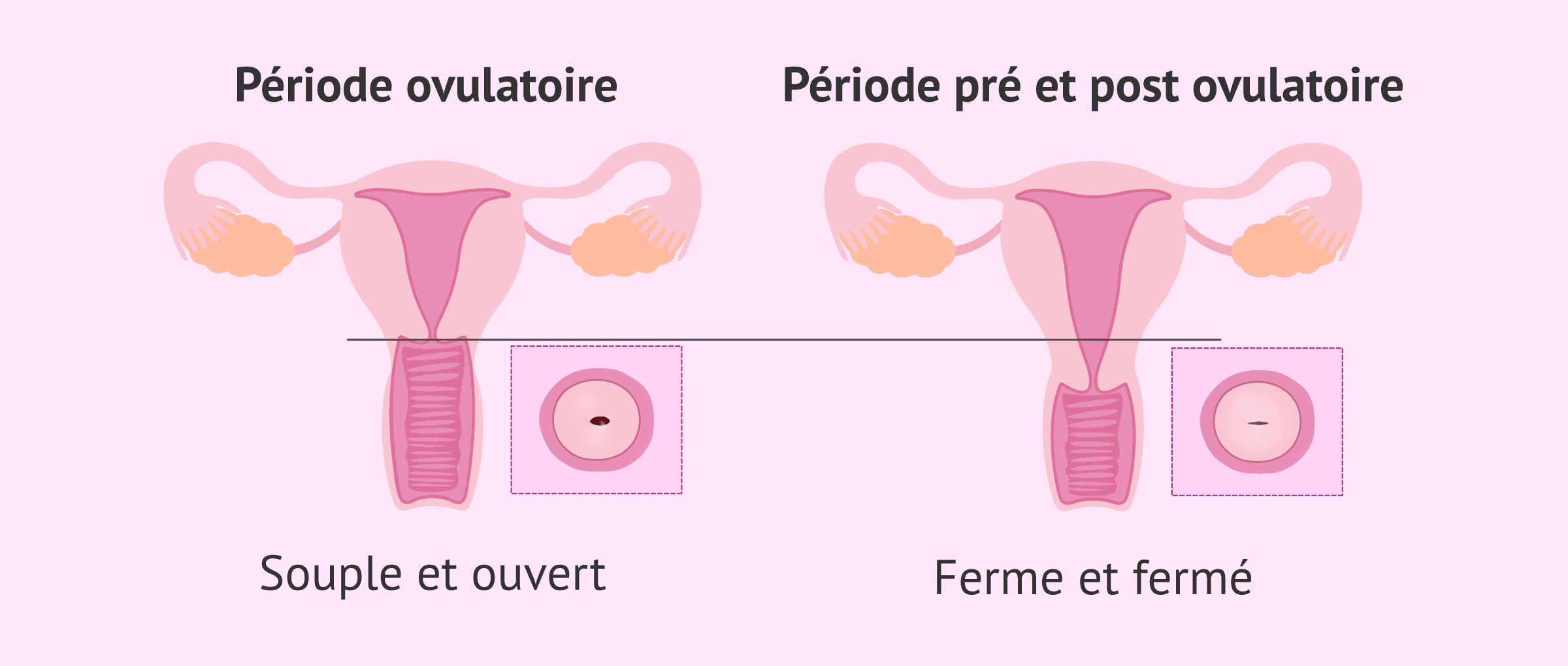 Cependant, pendant la période proche de l’ovulation, le col de l’utérus s’ouvre et devient plus mou et plus haut.