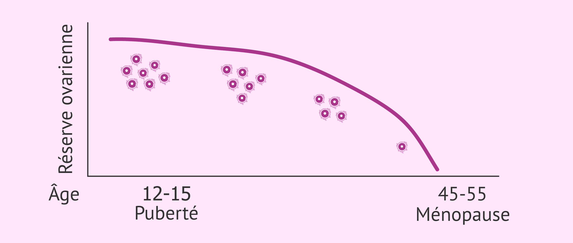 La réserve ovarienne diminue à mesure que l'âge de la femme augmente, jusqu'à la ménopause. Cette étape se caractérise par l'épuisement complet des ovules.